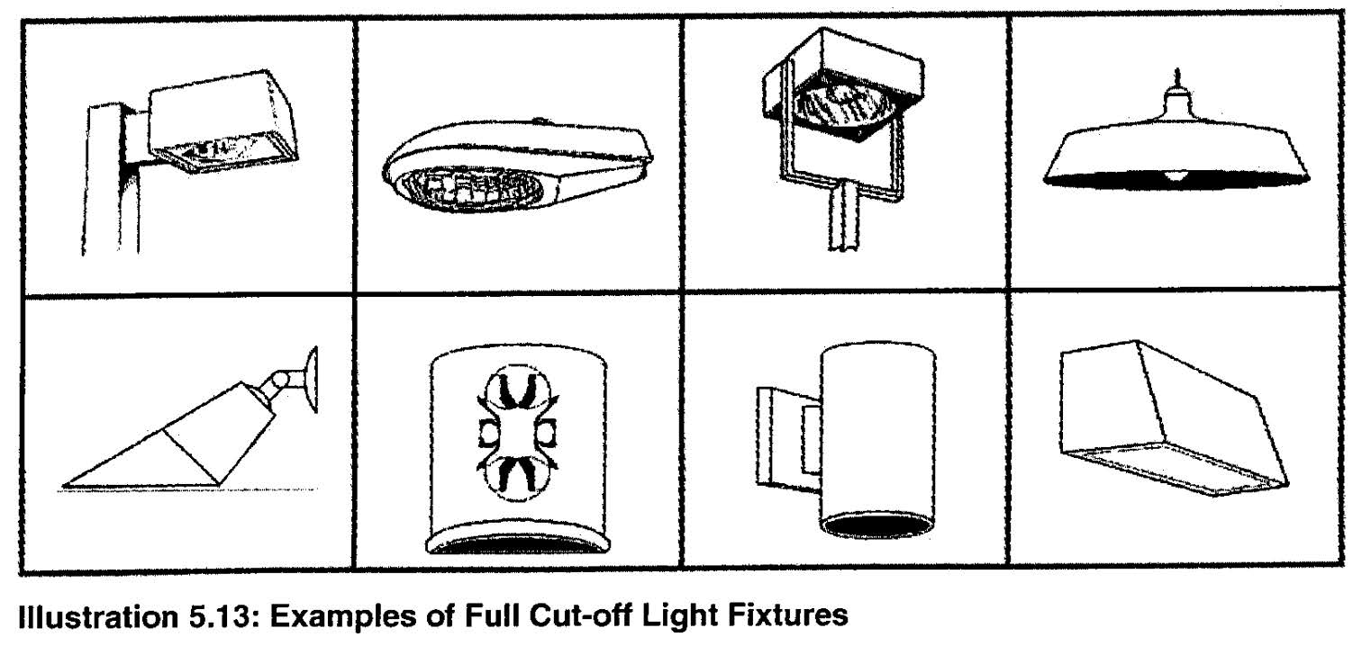 Lighting for parking lots may be contained within an interior parking lot landscaped area provided the landscaped area is a minimum of 200 square feet in area and provided the landscaping and trees, at maturity and as maintained, shall not obstruct the illumination path.