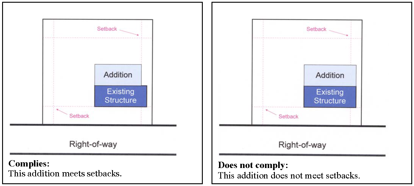 Meets current district setbacks (see figure 44-704-1 below);