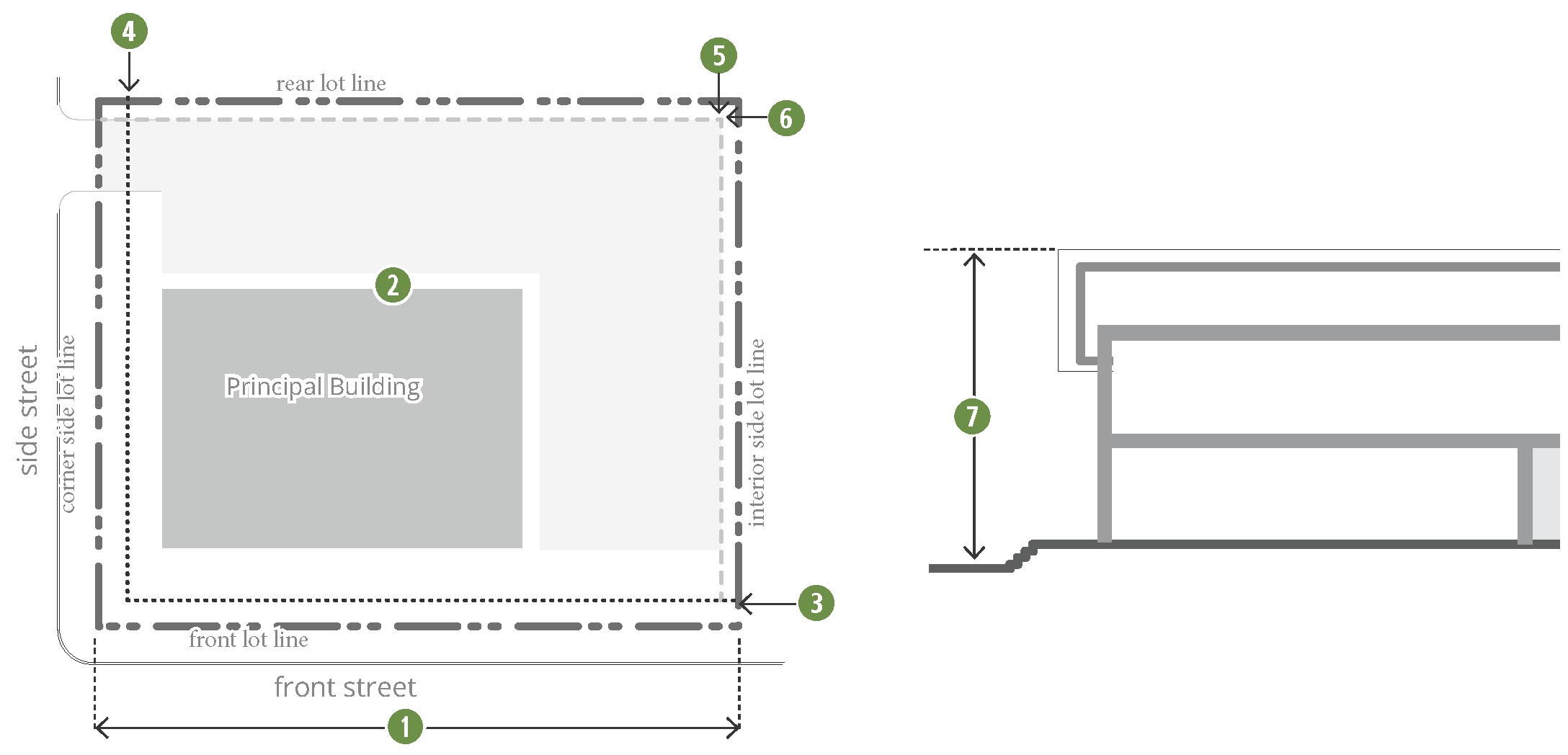 [5] Minimum 25-foot rear setback required for accessory buildings when rear yard adjoins
