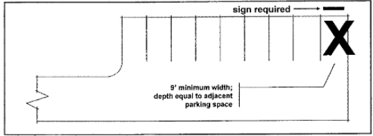 One parking space served by an EV charging station must meet the ADA design standards for a van-accessible parking space. This space is not required to be designated (signed) as an "accessible parking space."