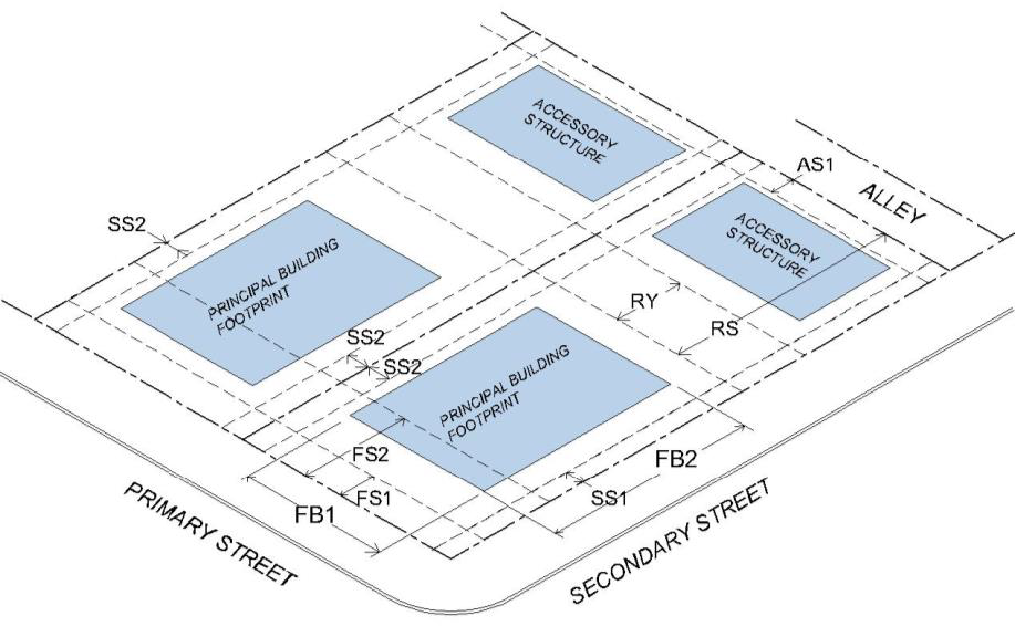 | PRIMARY BUILDING SETBACKS (MIN.) | |