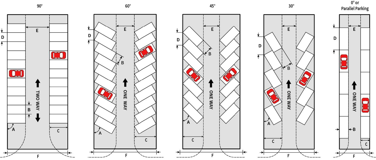 Drive aisles functioning as fire lanes may require greater widths and radii than those shown below (see 4.6.2E.6.b above).