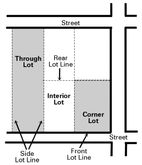 Within the County, the various types of lots shall be classified as shown in the graphic at right: