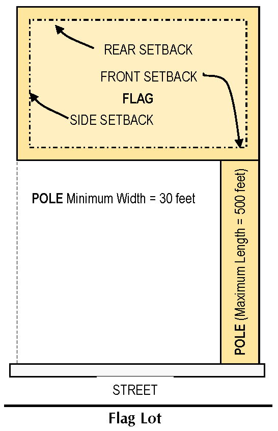 The flag portion of the flag lot must satisfy the minimum yard requirements of the zoning district.