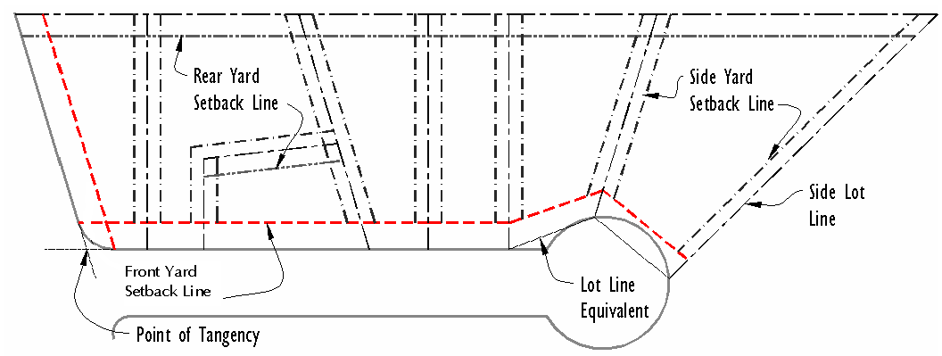 A front lot line equivalent is a straight line joining the foremost points of the side lot lines. In the case of rounded property corners at street intersections, the foremost point of a side lot line shall be assumed to be the point at which the side and the front lot line would have met without such rounding.