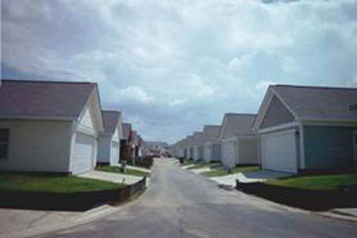 Residential garages may be attached or detached from the home. In all cases, the garage shall be placed in a manner that limits their impact when viewed from the street. Attached garages may set no closer to the street than the front wall of the main structure. Rear-loading garages are encouraged.