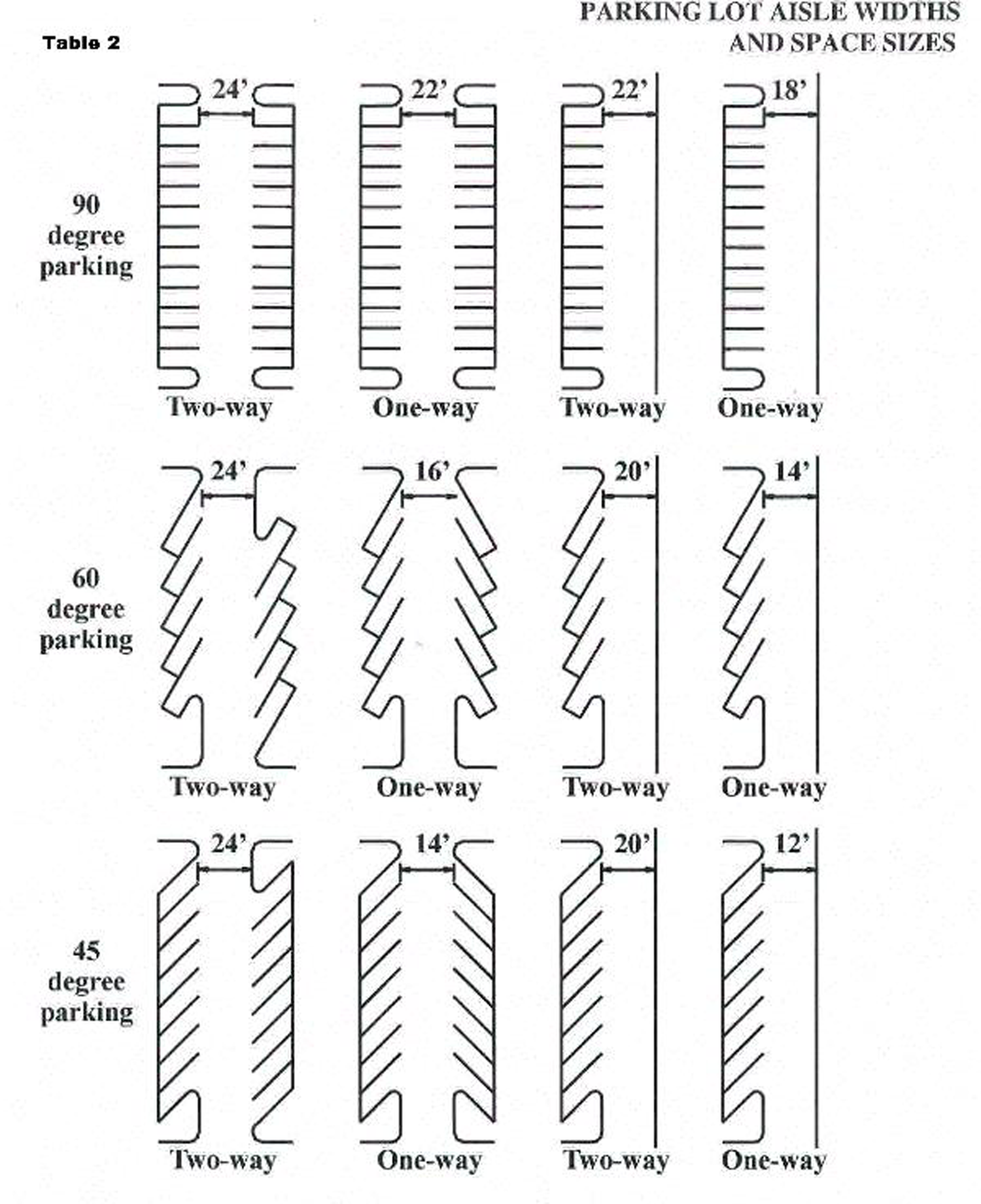 Design and improvement of parking. Please reference tables H-1 and table 2 at the rear of this section (703.00).