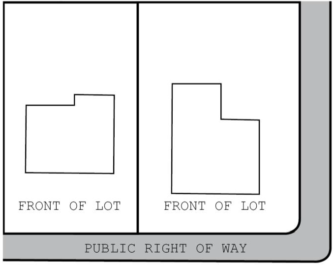 Street frontage means the proximity of a parcel of land to one or more streets. An interior lot has one street frontage and a corner lot has two frontages. When a parcel has no direct abutting street frontage, its frontage shall be the segment of the parcel through which its primary access travels.