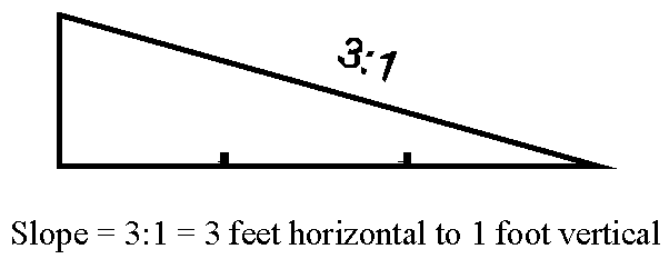 Slope means the degree of deviation of a surface from the horizontal, usually expressed in percent or degrees or as a ratio.