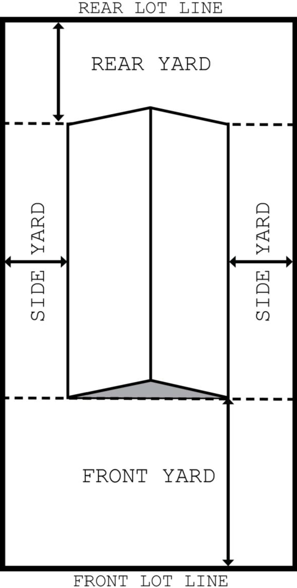 Yard means an open space on the lot which is unoccupied by any building or structure and unobstructed from its lowest level to the sky. See figure of yards below: