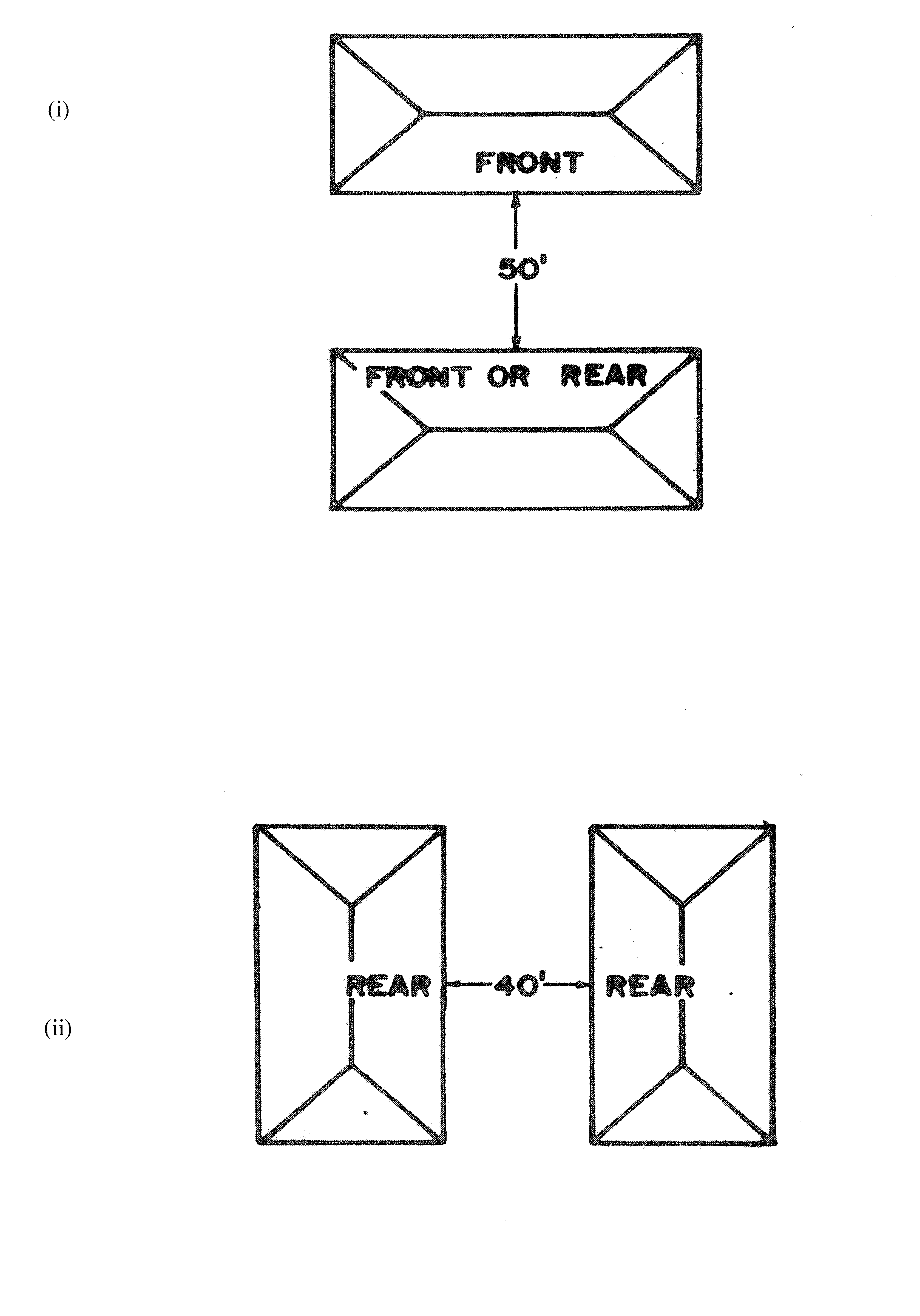 When the front wall of a building faces the front wall or rear wall of the nearest building, the distance between the two building walls shall be not less than fifty feet. (See Figure 17.28-1)