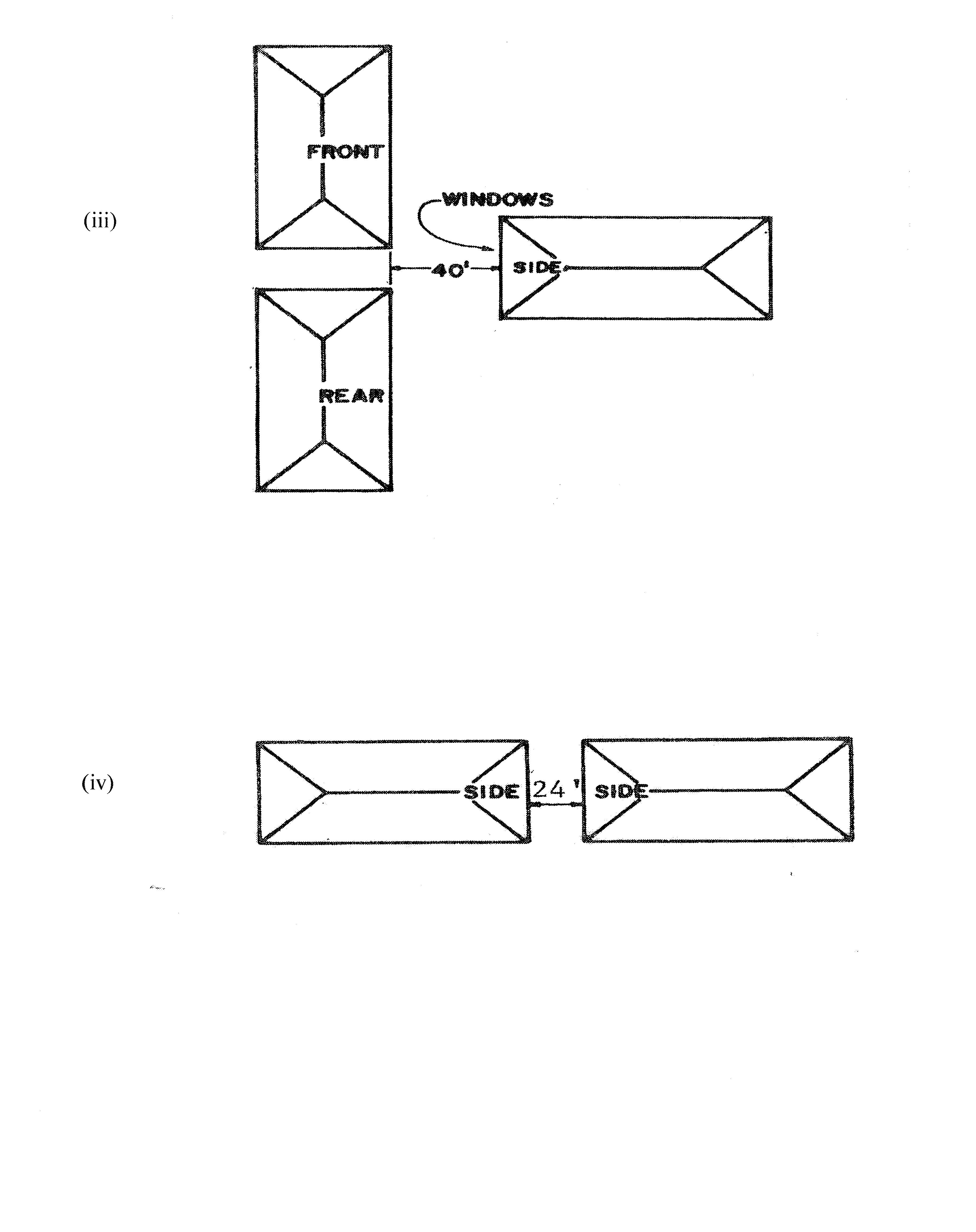 When the side wall of a building faces the front or rear wall of the nearest building, the distance between the two building walls shall be not less than forty feet. (See Figure 17.28-2)