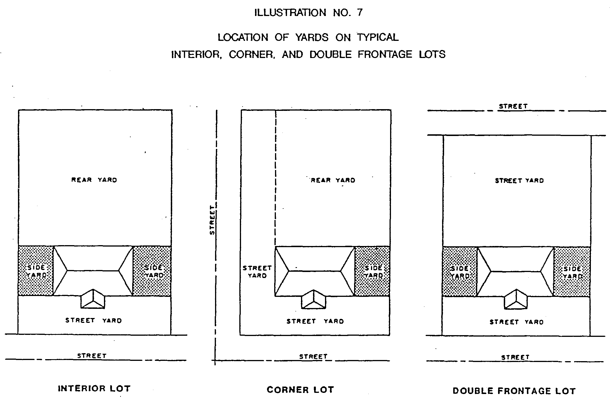 Double frontage lot. Lots abutting two opposite streets shall provide the front yard setback required by the district in which the lot is located from each street upon which the lot abuts. (See Illustration No. 7.)