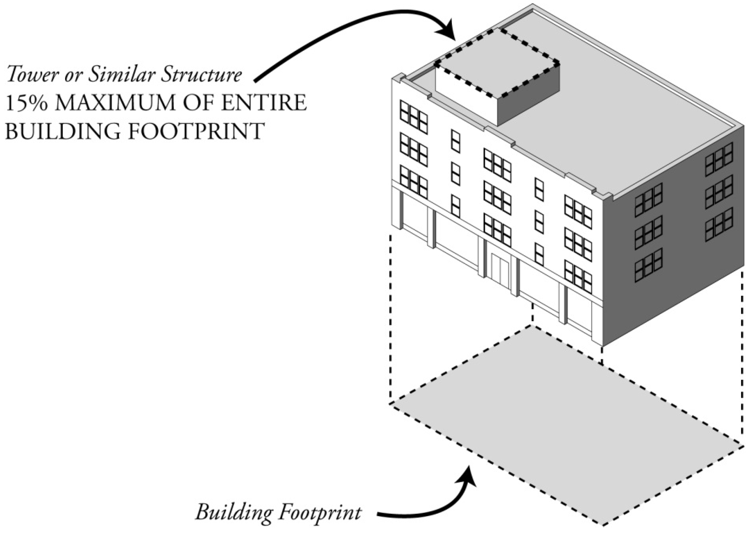The tower or similar structure covers an area fifteen (15) percent or less of the total structure footprint area;