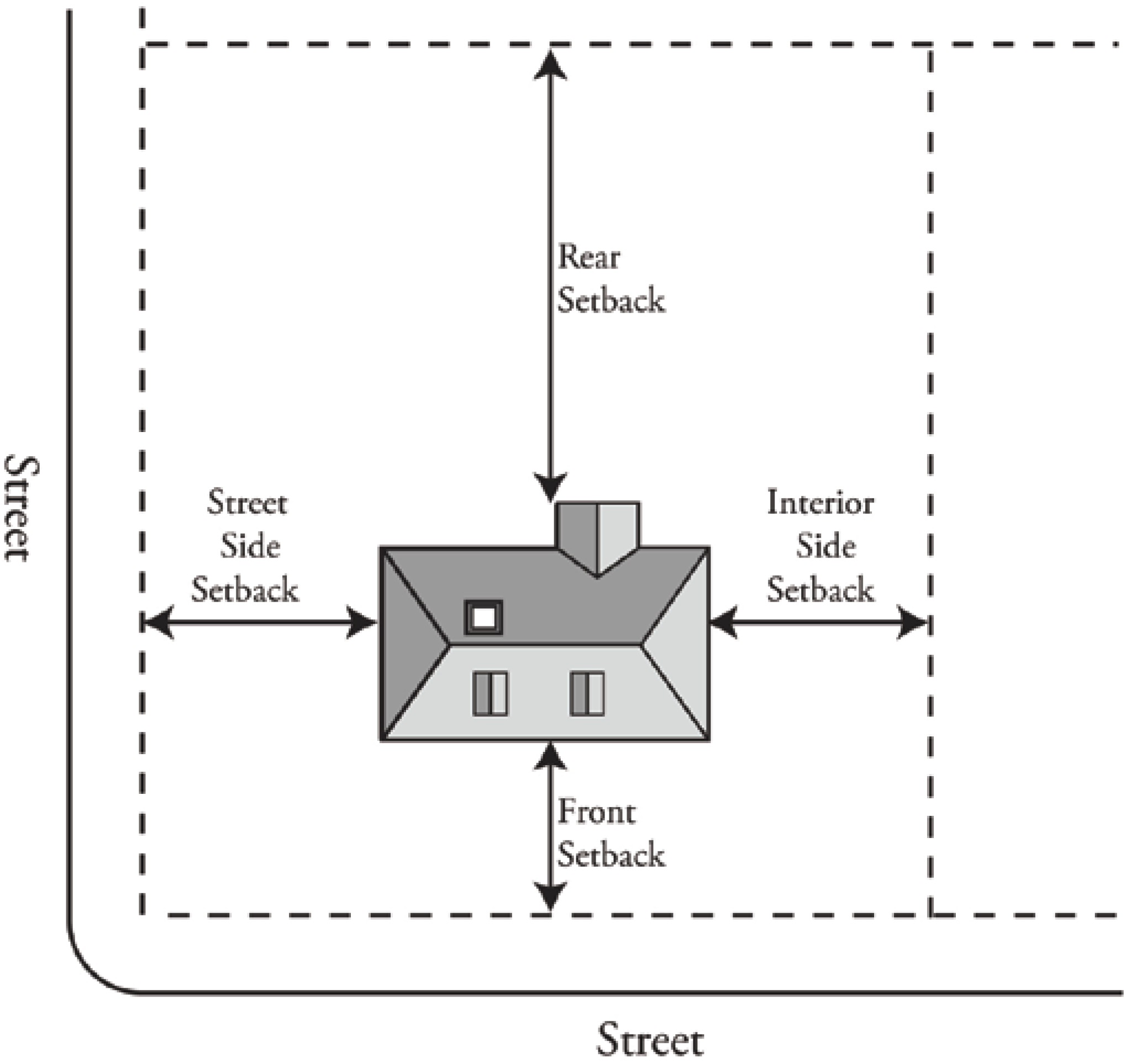 This article establishes rules for the measurement of setbacks and identifies permitted exceptions to the minimum required setbacks of structures from property lines.