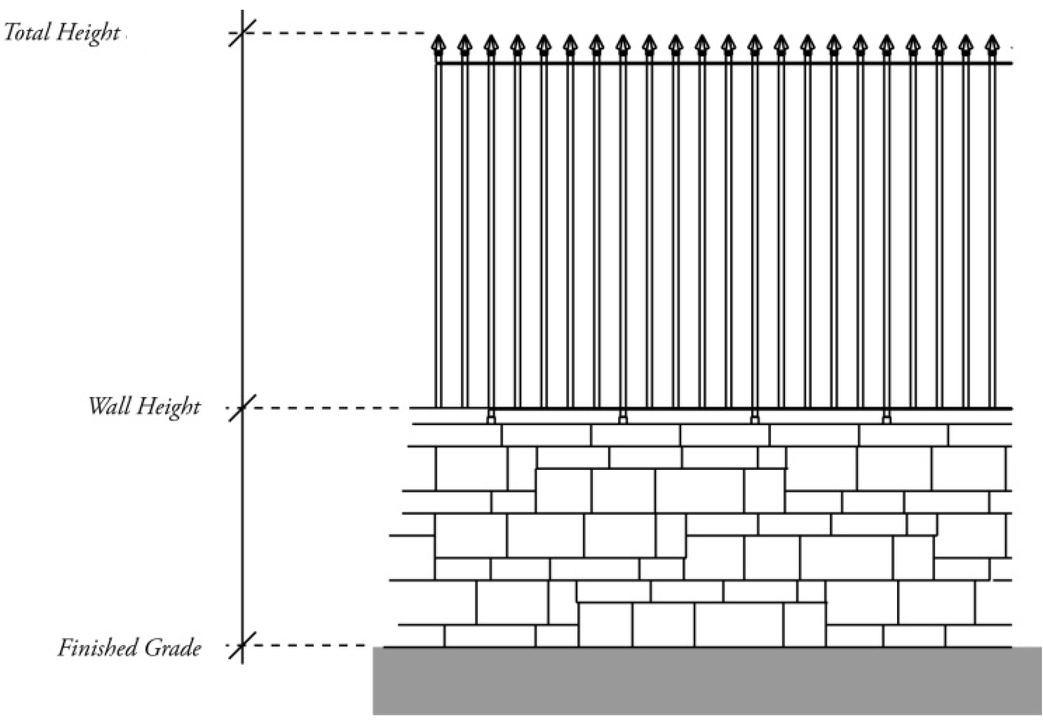 This article establishes rules for the measurement of walls and fences and identifies the maximum permitted height and design standards for walls and fences.