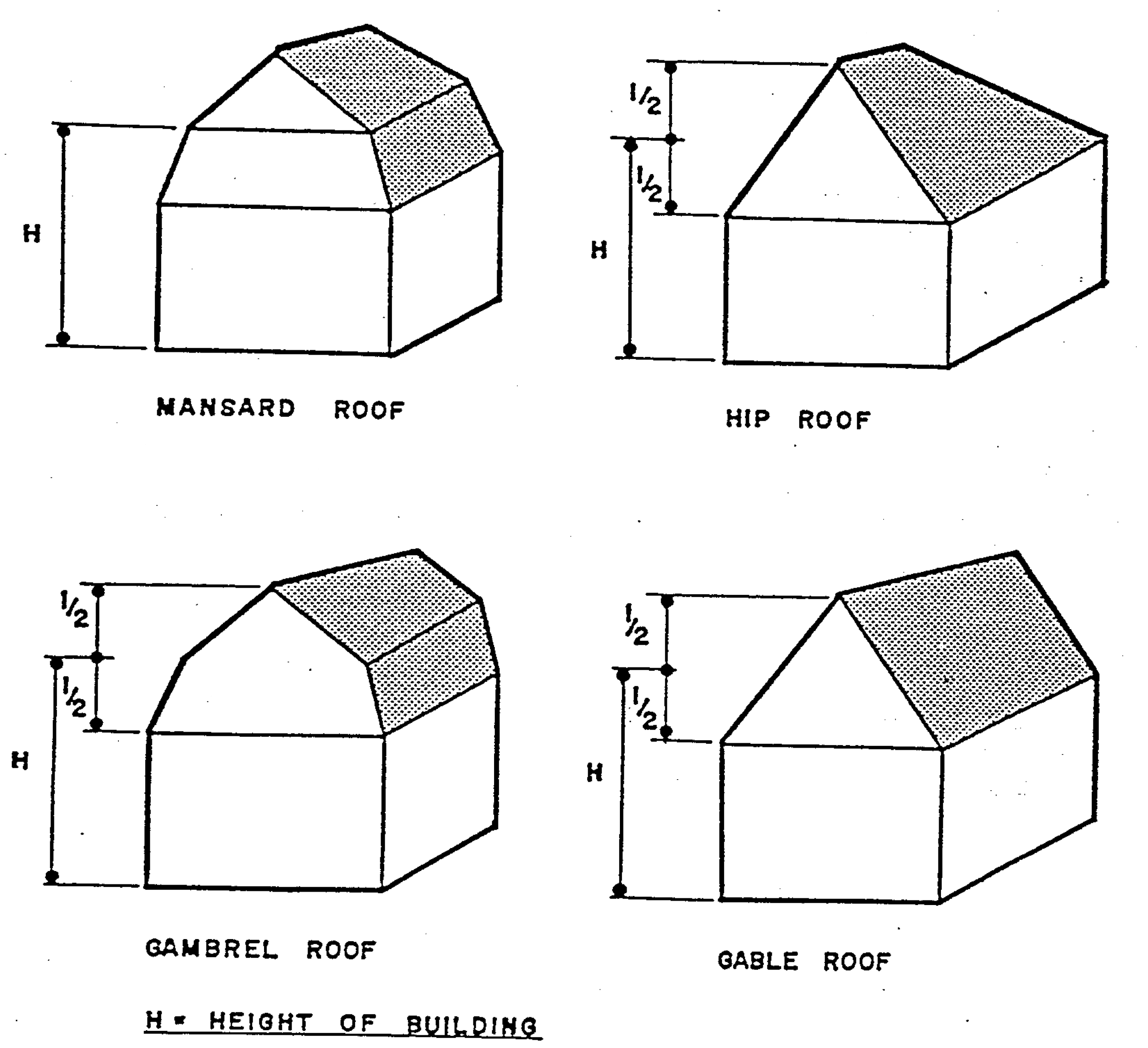 Building height means the vertical distance measured from the established grade to the highest point of the roof surface for flat roofs, to the deck line of mansard roofs and to the average height between eaves and ridge for gable, hip and gambrel roofs.