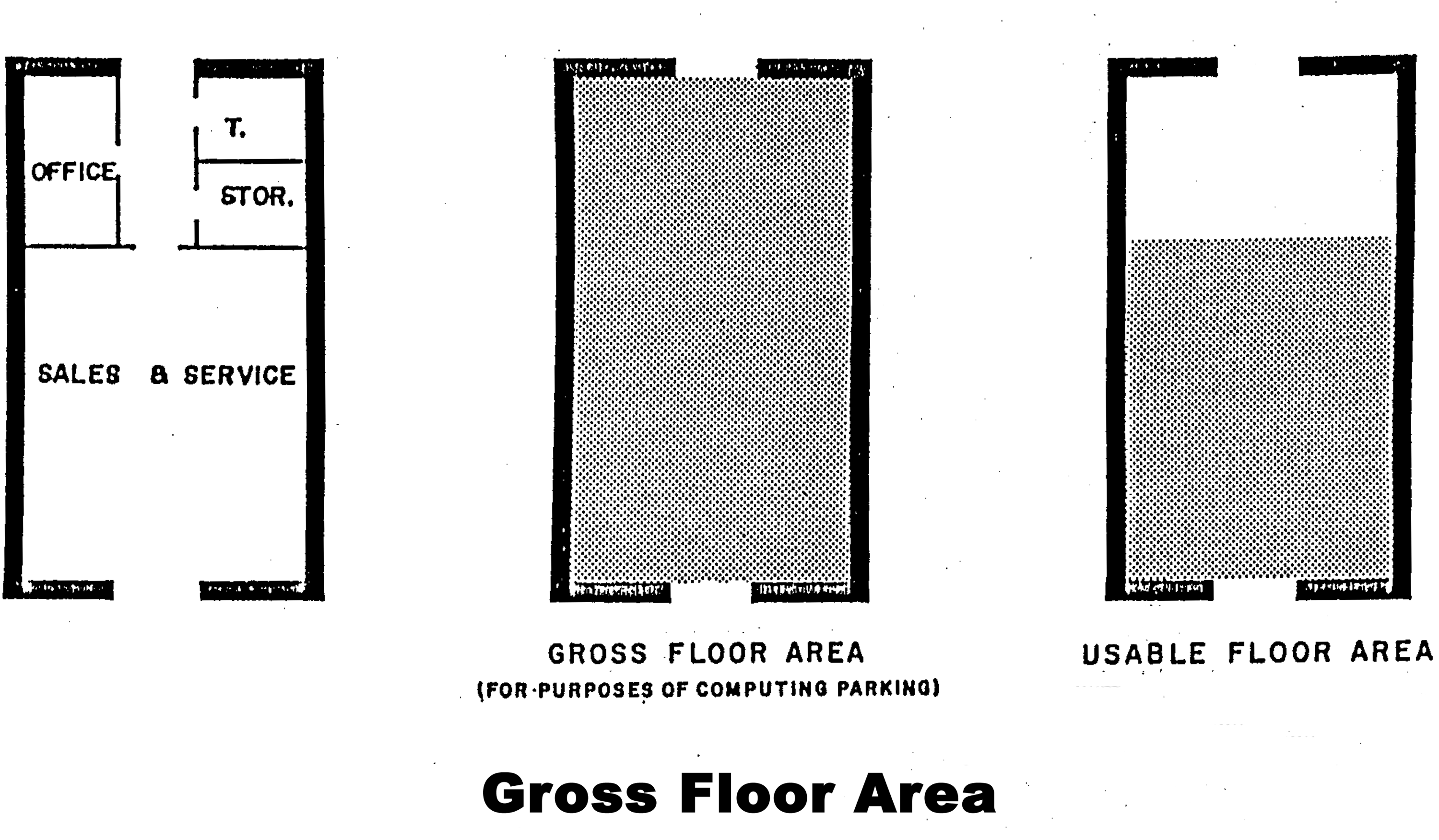 Floor area, gross, means, for the purposes of computing parking, that area used for or intended to be used for the sale of merchandise or services, or for use to serve patrons, clients, or customers. Measurement of usable floor area shall be the sum of the horizontal areas of the several floors of the building, measured from the interior faces of the exterior walls.