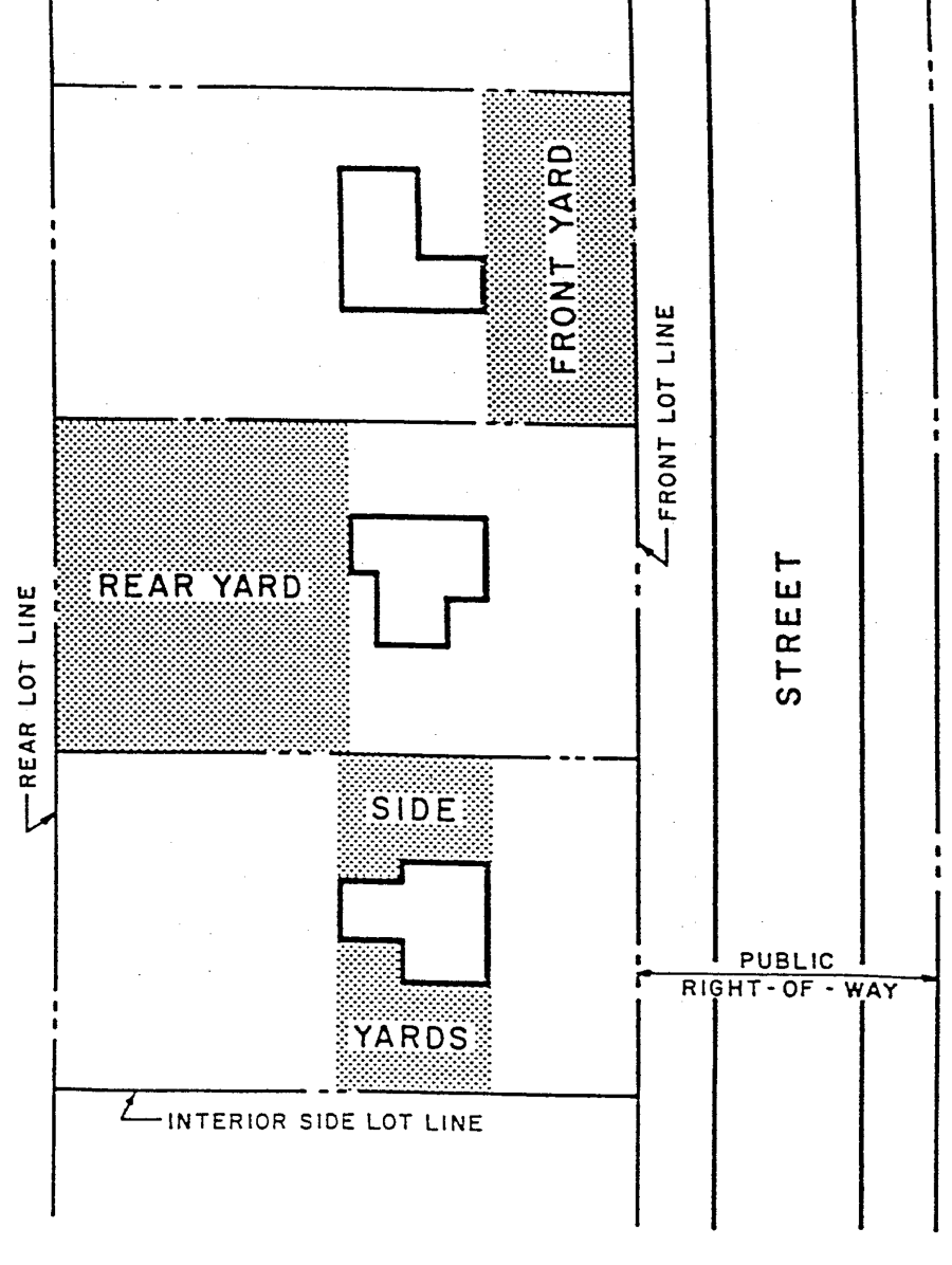 Side yard means an open space between a main building and the side lot line, extending from the front yard to the rear yard, the width of which is the horizontal distance from the nearest point on the side lot line to the nearest point of the main building.