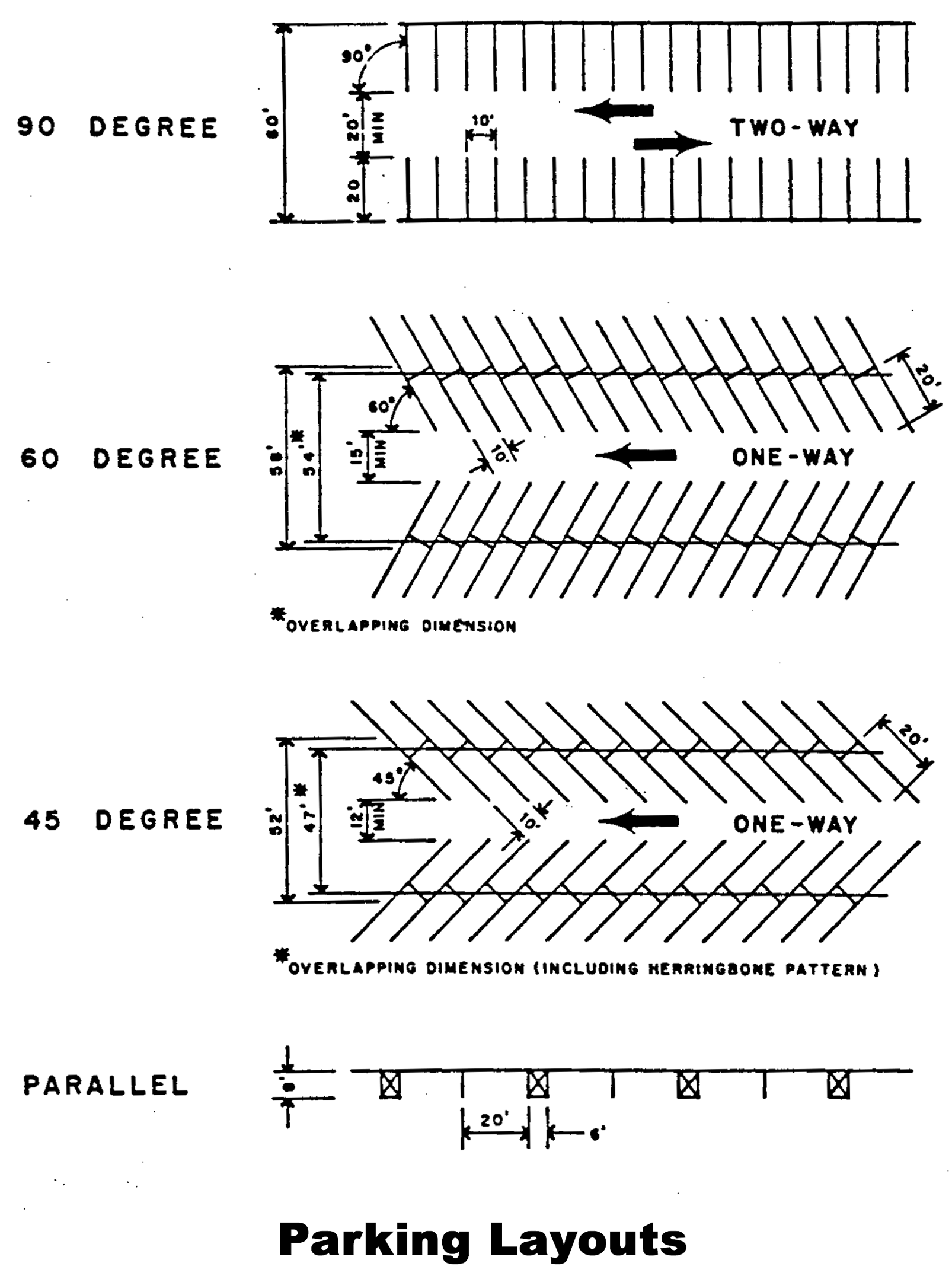 Maneuvering space. A minimum four-foot wide aisle of unobstructed space behind all required bicycle parking shall be provided to allow for adequate bicycle maneuvering.