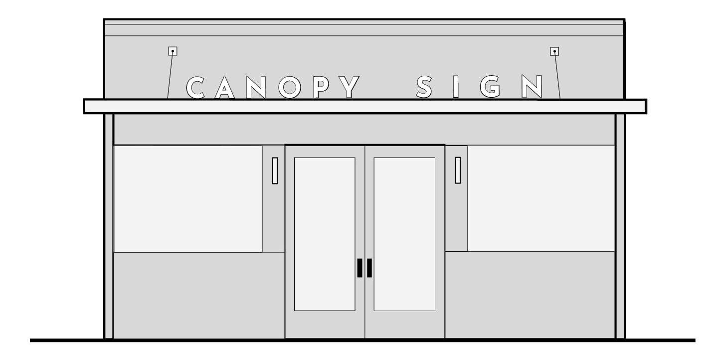 Shingle Sign. A sign that is suspended beneath a marquee, covered walkway, canopy, or awning.