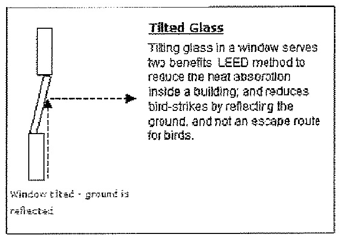 Glare reduction. All glazing must be low-reflective. Given the city's location near airports and within the Pacific Flyway, the use of tinted glass, tilted glass or other bird-friendly glazing methods (See Exhibit 1) are preferred.