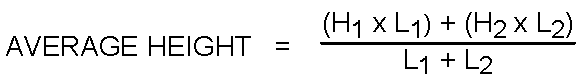 Where a building consists of various roof levels an average height, or "H", may be used in the required yard formula. Average height is determined by adding the products of the height of each roof level facing the given lot line, (H1, H2, etc.) times the length of each roof level (L1, L2, etc.) and dividing the sum by the sum of the length of the levels (L1, L2, etc.) (see formula below)