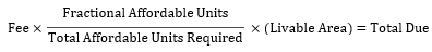 Projects with seven or more units: The applicant may pay an in-lieu housing fee to satisfy any fractional affordable unit obligation less than 0.5 rather than constructing the next higher whole number of affordable units. Nothing contained in this section shall alleviate the applicant from developing the remainder of the affordable units required by Section 21.24.040 (General requirements) or allow for payment of an in-lieu housing fee in situations where the fractional obligation is 0.5 or greater. In-lieu fees shall be calculated based on the fee schedule:
