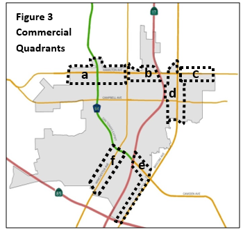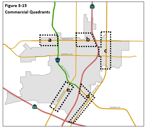 Payday lenders may be permitted in the following commercial quadrants as indicated in Figure 3-15, upon filing an application for a Conditional Use Permit and satisfying the required findings to support such use. In no event shall there be more than one payday lender in each commercial quadrant.