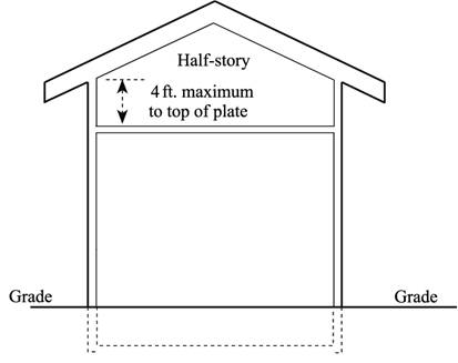 "Story, half" means a story under a gable, hip or gambrel roof, the wall plates of which on at least two opposite exterior walls are not more than four feet above the floor of such story.