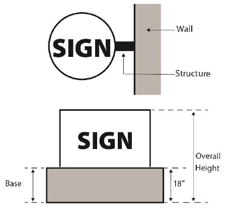 Monument sign. The portion of the base of a monument sign that is eighteen (18) inches or less shall not be counted towards the calculation of sign area. The base shall be included in overall height of the monument sign.