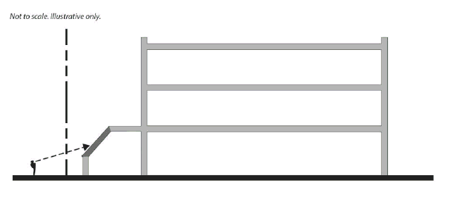 Human scale design, particularly at the ground floor levels of buildings should be employed.