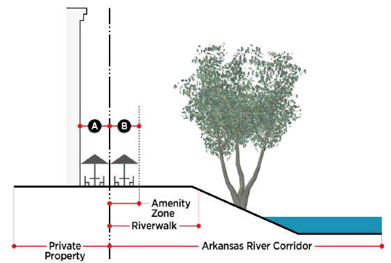 Riverfront mixed-use (RF-MU): between 1st and 11th streets on the north side of the Arkansas River and south of the railroad tracks.