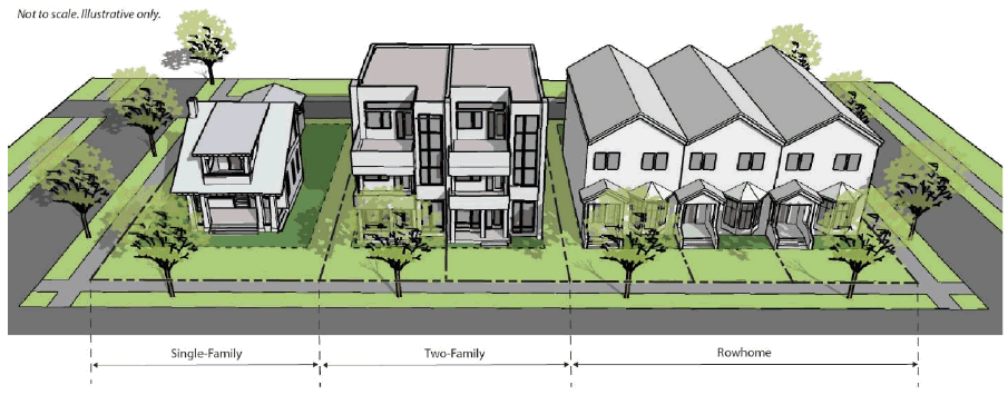 Dwelling, single-family, two-family, townhome: One (1) deciduous tree shall be planted per lot.