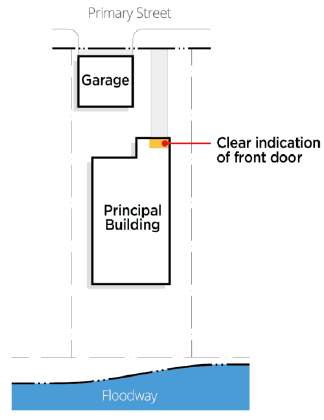 As illustrated in Figure 4.21, a lot which provides access to a garage or other parking in the front setback shall provide a clear indication from a street or lane where the front door to a housing unit is located.