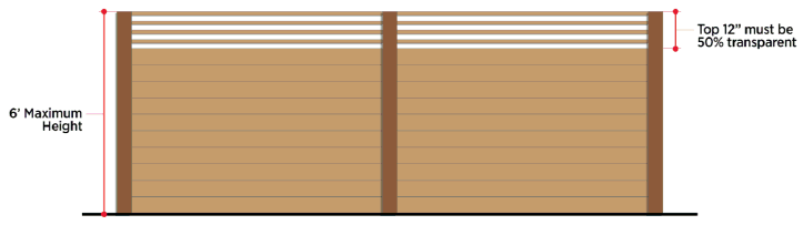 As illustrated in Figure 4.22, the top twelve (12) inches of a fence shall be fifty (50) percent transparent.