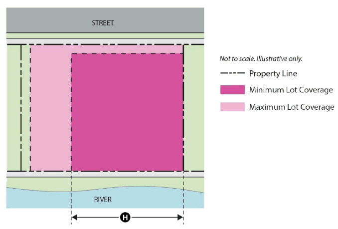 The following lot standards, building placement, building height, easements, and related information for the RF-R District is primarily relayed in tables and figures. Utilize the reference to the left of a table as a guide to the visual representation of the regulations via figures. All figures are for illustrative purposes only.