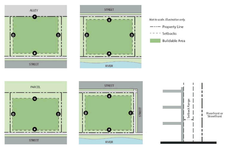 General location within city limits. The Riverfront Districts are intended to be utilized generally as follows: