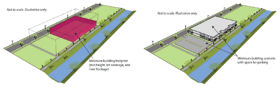 To allow for efficient parking ratios, offsite parking, shared parking, and other creative parking solutions within the riverfront area.