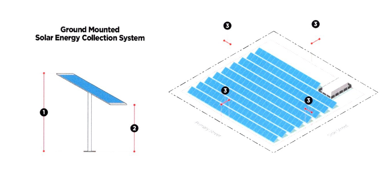 Ground-mounted solar energy collection systems shall be permitted in the rear setback only.