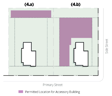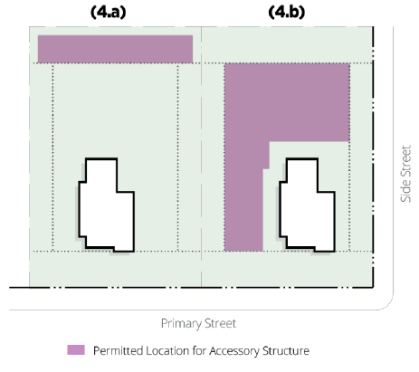 The portable outdoor storage device shall not encroach on City property, City right-of-way, neighboring property, or sidewalk. The unit shall be sited on an approved hard paved surface between the front property line and the rear building line of the principal building. The visual distance between the portable outdoor storage device and the interior side setback property line is four (4) feet or upon the approval by the Zoning Administrator and as agreed upon by written consent by the neighboring property owner.