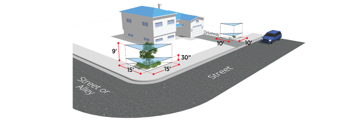 A vision clearance triangle shall be maintained at every street intersection, driveway, and alley junction.