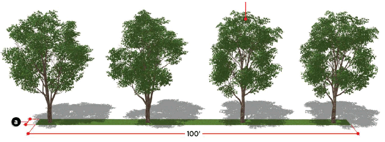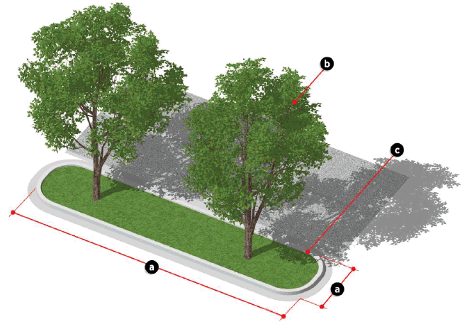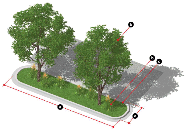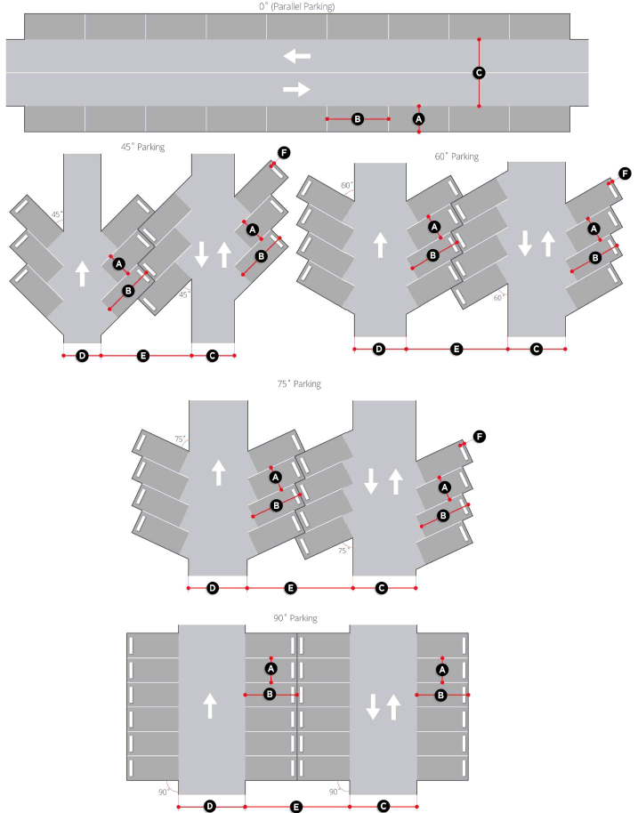 Dimensional requirements of parking spaces and maneuvering lanes.