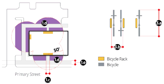 Bicycle parking shall be sited within fifty (50) feet of a building's main entrance. If provided indoors, bicycle parking shall be located within a common area designated for secure bicycle storage.