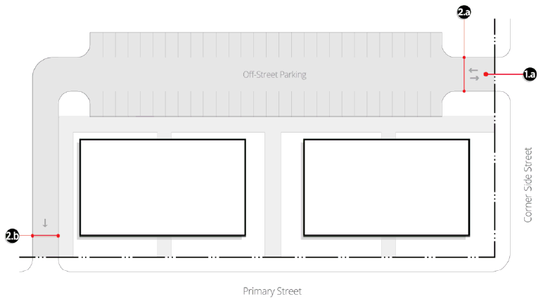Service drives to off-street parking areas shall be designed and constructed to facilitate the flow of traffic and provide maximum safety for pedestrians and vehicular traffic within the property. The traffic pattern, ingress and egress shall be reviewed and approved by the Public Works Director.
