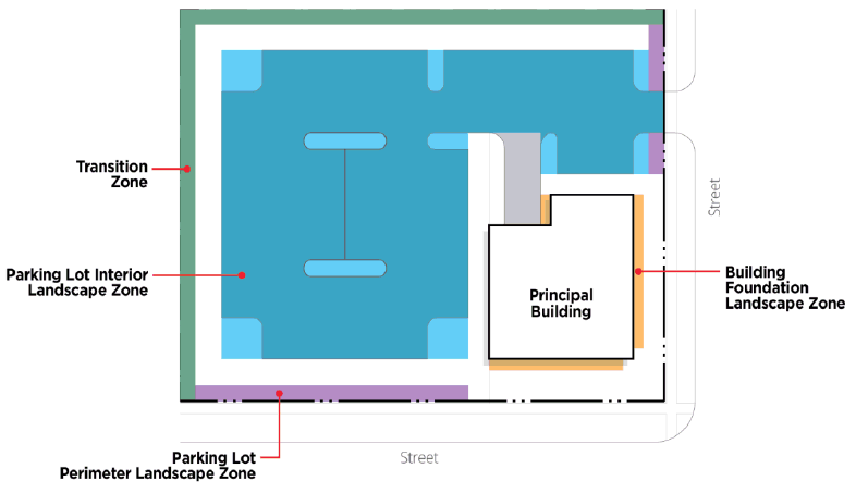 Pole placement. Pole-mounted outdoor lighting shall be located outside of utility easements, designed in coordination with required landscape zones (Section 17.06.030), and located outside of parking area medians and islands.