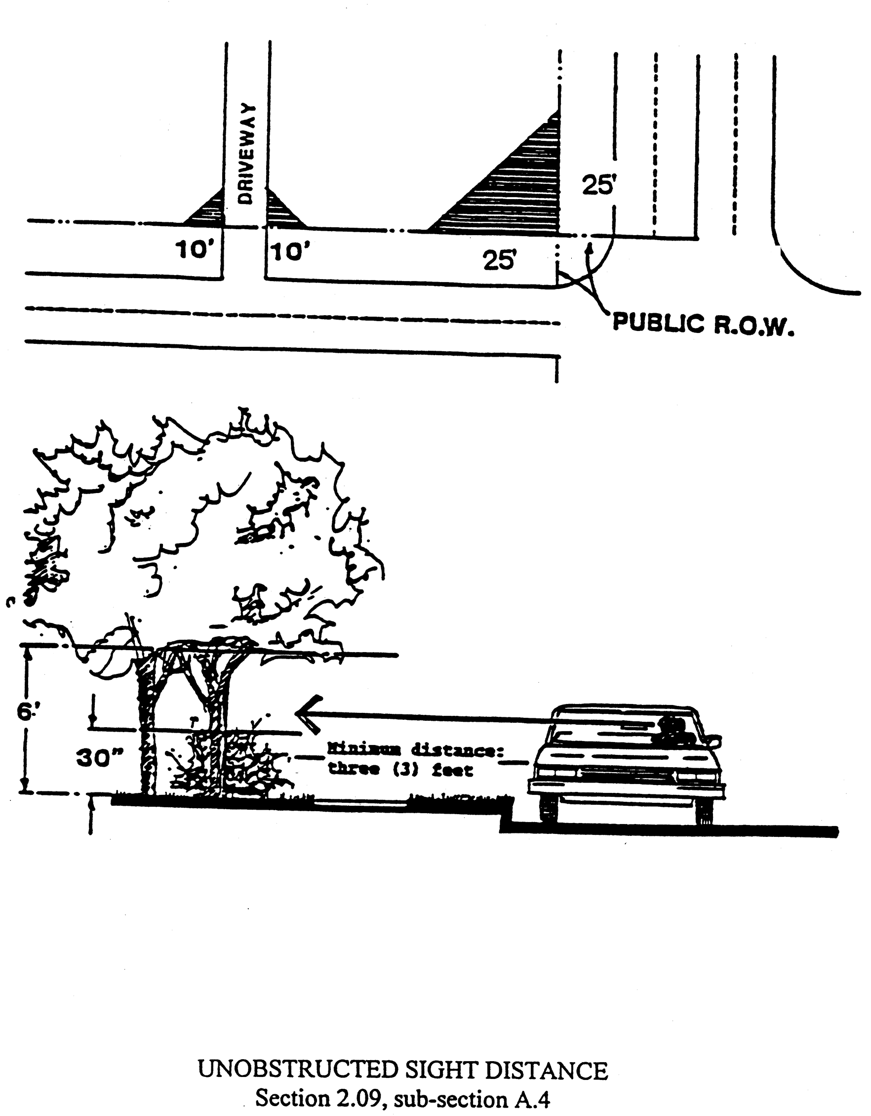 Unobstructed sight distance. All fences, walls, and borders shall comply with the unobstructed sight distance requirements of section 2.09(A)(4).