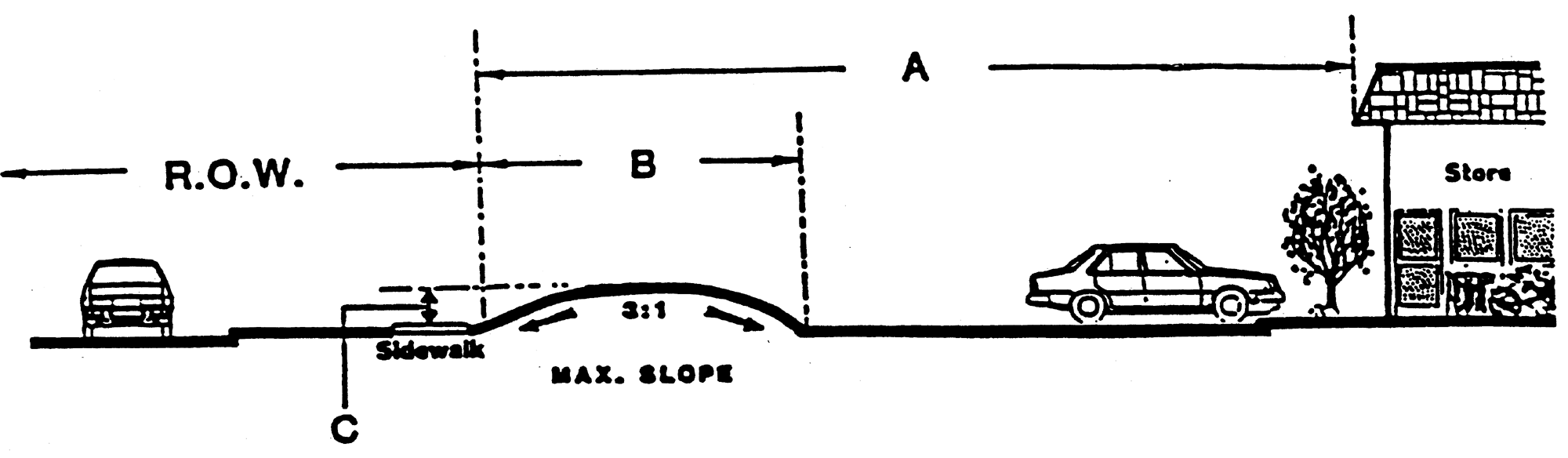 Front yard berm requirements. Wherever front, side, or rear yards adjacent to public rights-of-way are used for parking, a berm shall be required to screen the parking from view of the road. The berm shall be located totally on private property, adjacent to the road right-of-way line. The township encourages undulation in the height of the berm, subject to review and approval of the berm design as shown on the site plan. Required berm height and width shall be related to building setback as indicated in the following schedule (see illustration):