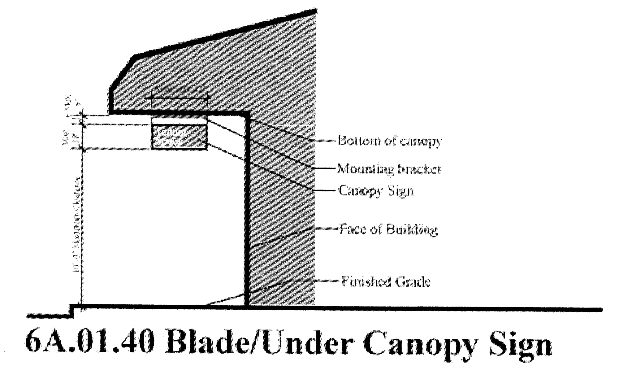 Under-canopy sign means a sign mounted under a canopy directed to pedestrians and usually mounted perpendicular to the facade it means to identify. Under-canopy signs are also known as blade signs.