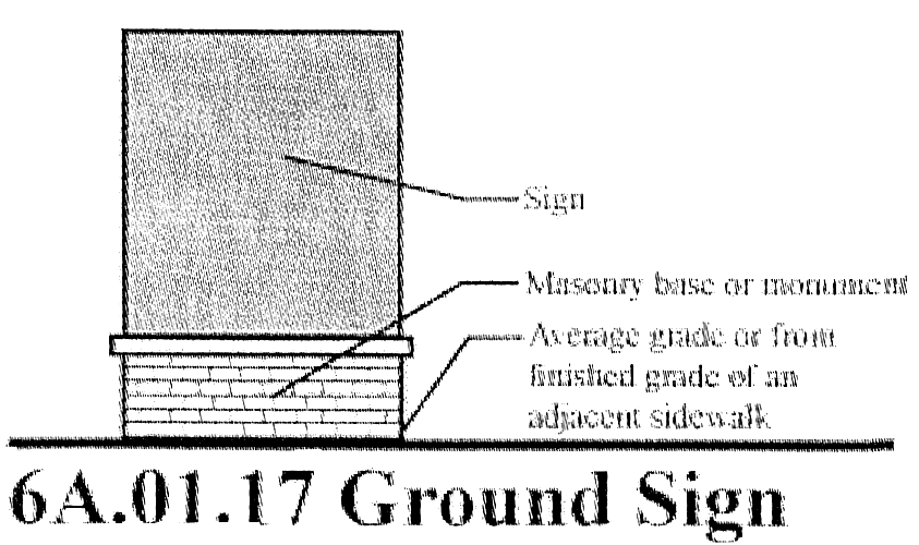 Ground sign means a sign which is mounted permanently in the ground on a masonry base or monument. A residential entrance monument is not a ground sign.